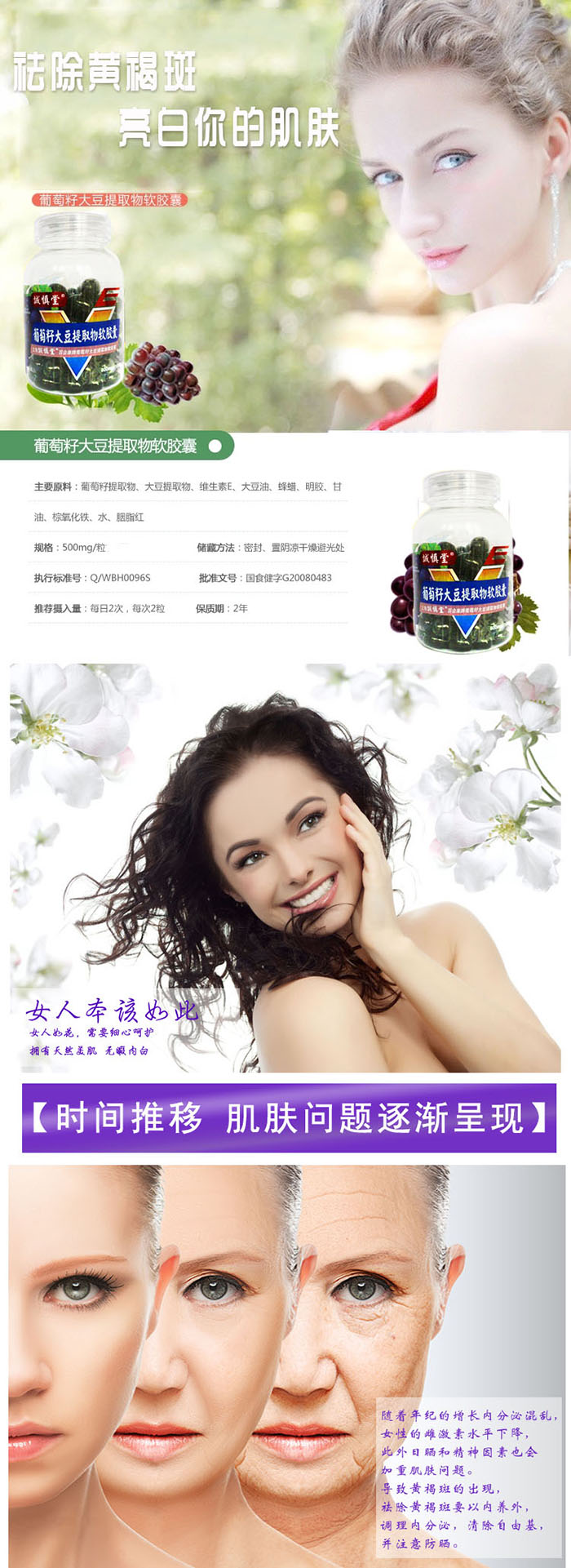 本品是以葡萄籽提取物、大豆提取物、维生素E、大豆油、蜂蜡、明胶、甘油、棕氧化铁、胭脂红、水为主要原料制成的保健食品,经人体试食试验证明,具有祛黄褐斑的保健功能。 葡萄籽可用于过敏体质的改善,又可保养皮肤,抗氧化。能改善多种过敏症及口腔溃疡,还能减少黑色素沉着,特别是能防止及改善紫外线引起的皮肤色素沉淀,曾强皮肤弹性,减少皱纹。葡萄籽提取物加维生素C是当今已知最有效的自由基清除和抗氧化剂,保护细胞不释放过敏因子,从根本上解决了过敏原因,是抗过敏的根本途径。 适宜人群: 1、需祛斑者与美容皮肤者; 2、过敏性鼻炎; 3、皮肤过敏,支气管哮喘; 4、防疾病、抗衰老等八十多种与自由基有关的疾病预防。 规格:500mg*100粒 食用方法:每日2次、每次2粒 |